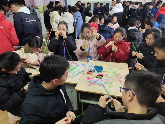分享环节,有同学表示“在活动过程中,我们组的所有同学都参与到了制作塔的过程中,还有专门的讲解员,组员之间有不同的分工合作,男生主要负责搭建底座,打根基,确保稳固女生主要负责连接吸管增加高度,吹气球打结来制作挂饰增加美观度,最后男生再把女生连接好的吸管长条连接提高高度,很有默契,所以我们组用时最快,效果也最稳固”。F组的同学表示:“我们组虽然也不能独立稳固站立,但几个男生一起组装的爱心造型相比很别致,拿不了最佳稳固奖也没关系,我感觉我们可以收获最佳创意奖还有的同学说:“虽然我们组的塔最后并没有成功稳固站立,既不美观也缺少创意,但是在搭建过程中,我们体验到了一起做一件事带来的快乐,索性我们的作品就叫LOSER吧,把成败看开,心态要好。另有同学分享:“我们组的组员几乎都把力气用在了急于增加高度上,却忽略了稳固根基结构,导致制作的很长的吸管条用不起来,只能靠人外力支撑,这给我们一个反思就是做事不要急功近利,要考虑周全有大局意识。