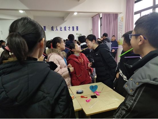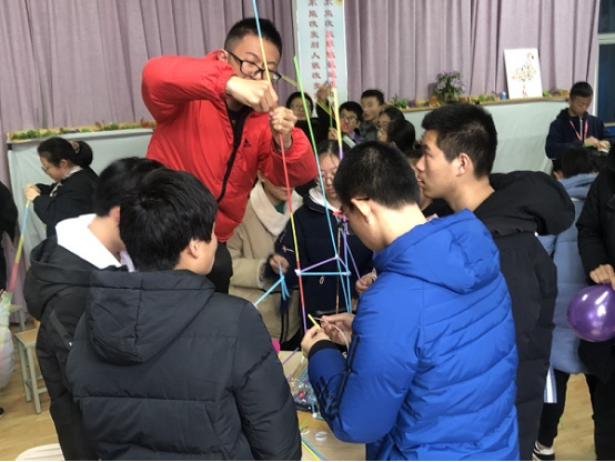 在正式活动前,心理老师引导大家通过报数随机分为10人一组,小组成员化身“啄木鸟”体验互助任务,破冰的同时也增强了小组内部的凝聚力。