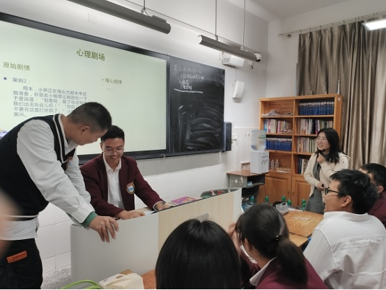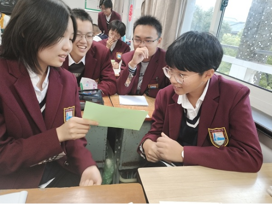 因此,心理老师带领高一同学开展了《恰当表达自己》这一主题活动课。老师先带同学们做了一个暖身活动“我说你画”,邀请一名同学上台“表达”,其他同学“倾听”,结果,我们发现能完整准确地画出图形的只有很少的一部分同学。