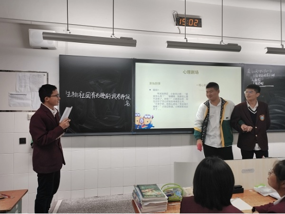 “情境:足球赛后”,这里给同学们提供了三种表达方式,让大家感受语言传递给我们的不同感受。“良言一句三冬暖,恶语伤人六月寒”,表达可以改变我们的情绪,改变我们的状态。在感受完语言的力量之后,老师设计了三个不同的剧本,让同学们分组来呈现,一部分同学演绎“原始剧情”,另一部分同学需要改编剧本演绎“暖心剧情”。