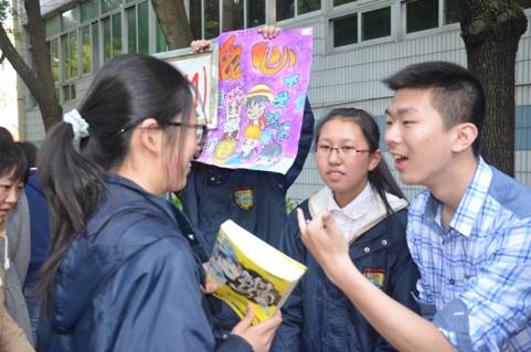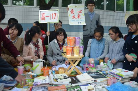 2014年4月13日下午,团委、学生会联合举办的海中学子爱心义卖活动在体艺馆东侧南北大道如期举行,在春意盎然的校园里谱写了一曲爱的乐章。本次义卖活动中,高一、高二同学纷纷捐出自己收藏的书籍、工艺品,还有自己的书画习作等很有意义的物品参与义卖。义卖现场人声鼎沸,热闹非凡。同学们布置了精致的展台,纷纷张贴具有本班个性特色的海报,叫卖着本班义卖物品。此次义卖活动不但吸引了广大校内师生的关注,还有广大社会人士闻讯前来,鉴赏品评,慷慨解囊。海安县电视“民生热线”栏目也对策划、组织本次活动的团委、学生会部分人员及参与活动的社会爱心人士进行了现场采访。