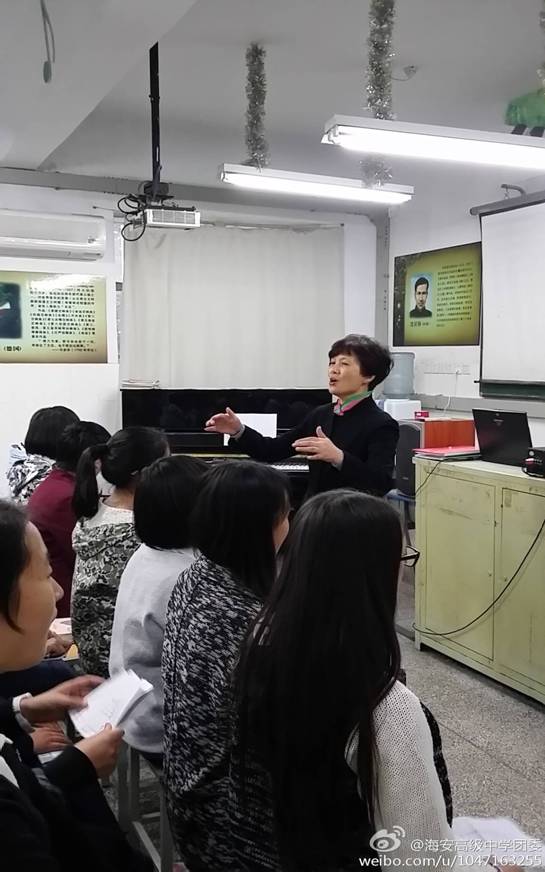 紧张排练结束后指导老师会心微笑(海中合唱团)