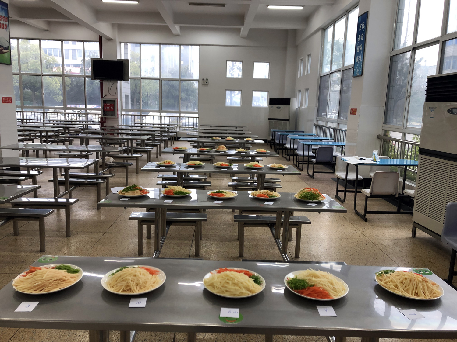 为推动食堂建设,提升服务理念,强化“你的满意,我的追求”服务宗旨,提高食品安全意识,规范操作流程,进一步提高食堂职工的专业技能水平,同时展示学校食堂职工的烹饪技艺,弘扬校园美食文化,丰富食堂员工业余生活,我校工会和总务处于2020年12月27日上午组织了食品安全技能培训及迎元旦厨艺大赛活动。