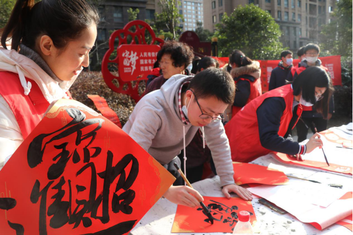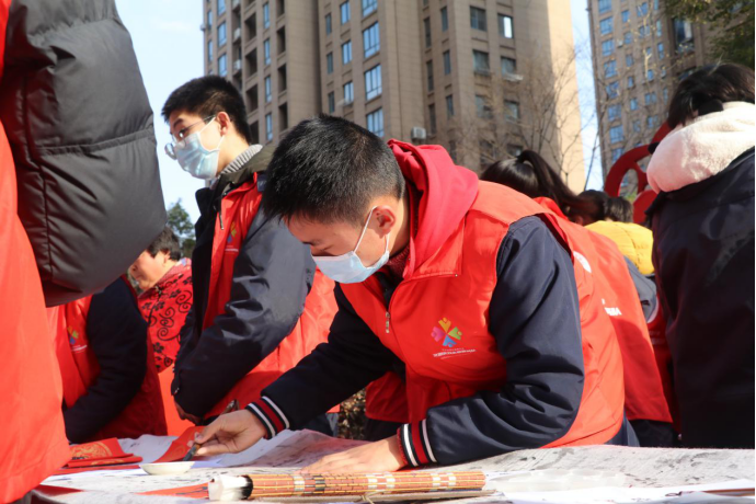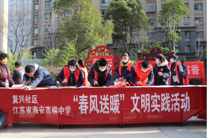 2021年2月2日,9323彩集团联合驻地复兴社区举办了新春送春联活动,此次活动是海安中学党委“春风送暖”系列文明实践活动之一。