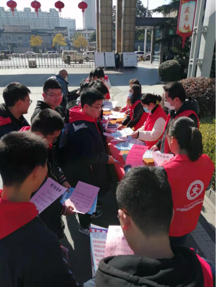 牛年正月初十,春和景明,物候更新,海安中学党委、团委、工会和复兴社区联合开展了反诈骗文明志愿实践活动。