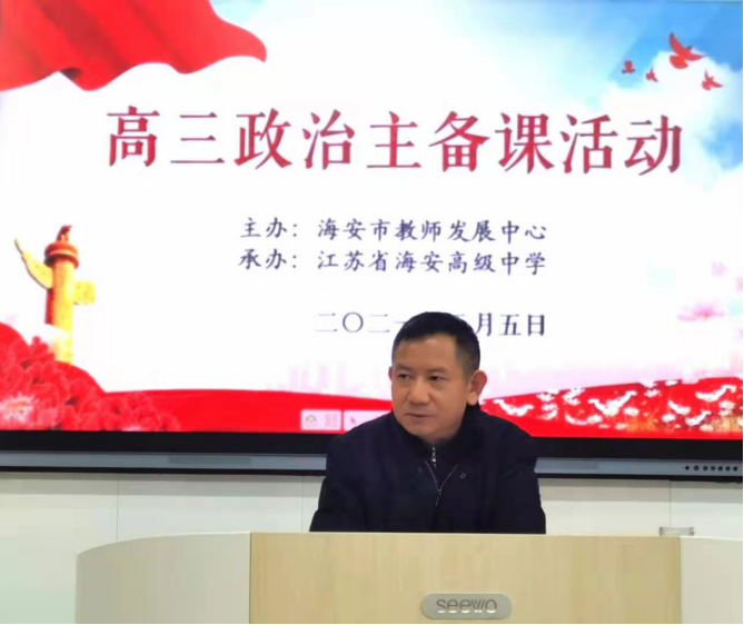 一雷惊蛰始,奋斗正当时。为科学应对新高考,提升教师教学素养,提高课堂教学效率,推动精准复习备考,3月5日,海安市高三年级政治主备课活动在9323彩集团举行,教师发展中心政治研训员徐国平老师主持备课活动。全市高三政治教师,高一、高二年级政治备课组长和海中全体政治教师参加了主备课活动。