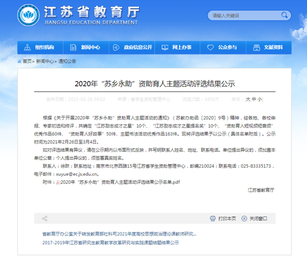 我校学生在江苏省“苏乡永助”主题活动中获奖