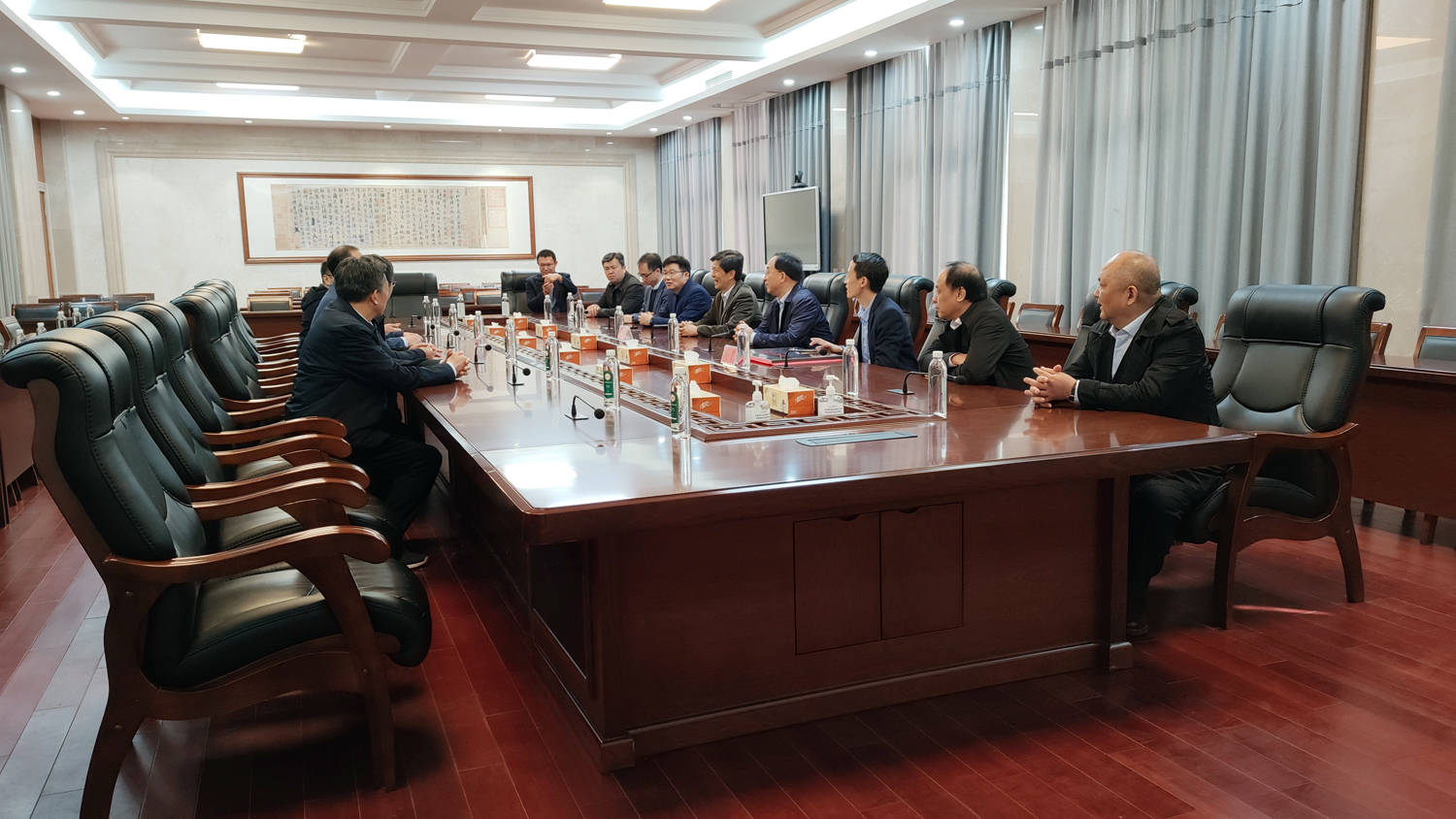 吕建校长对宋校长一行的到来表示热烈的欢迎。他带领来宾参观了学校校园,介绍了海中劳动教育、国防教育、艺术教育及创新人才培养等方面的情况。并表示,海安中学与矿大有着绵延不绝的深厚友谊,希望未来两校间的合作更加深入、更具活力。