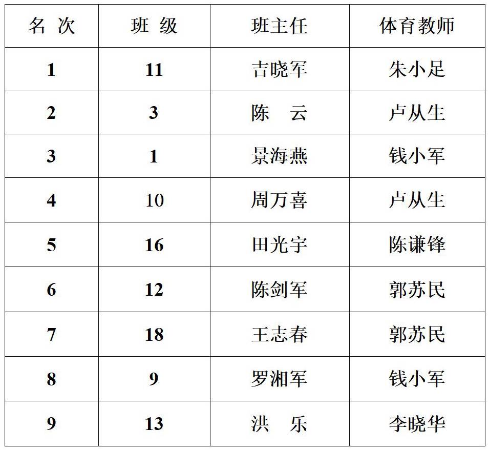 海安中学举行2021年“迎五一”跑操比赛 来源:德育处 发布时间:2021-04-25 00:00:00 浏览次数: 次 【字体:小 大】 2021年4月24日上午,海安中学举行了各年级“迎五一”跑操比赛。赛前抽签决定比赛出场顺序。本次比赛现场评委均由各年级推荐的优秀学生担任,学校领导到场指导。经过激烈的角逐,以下班级获得了流动红旗:高三年级: 高二年级: 高一年级: 精彩图集 分享到: 【打印正文】
