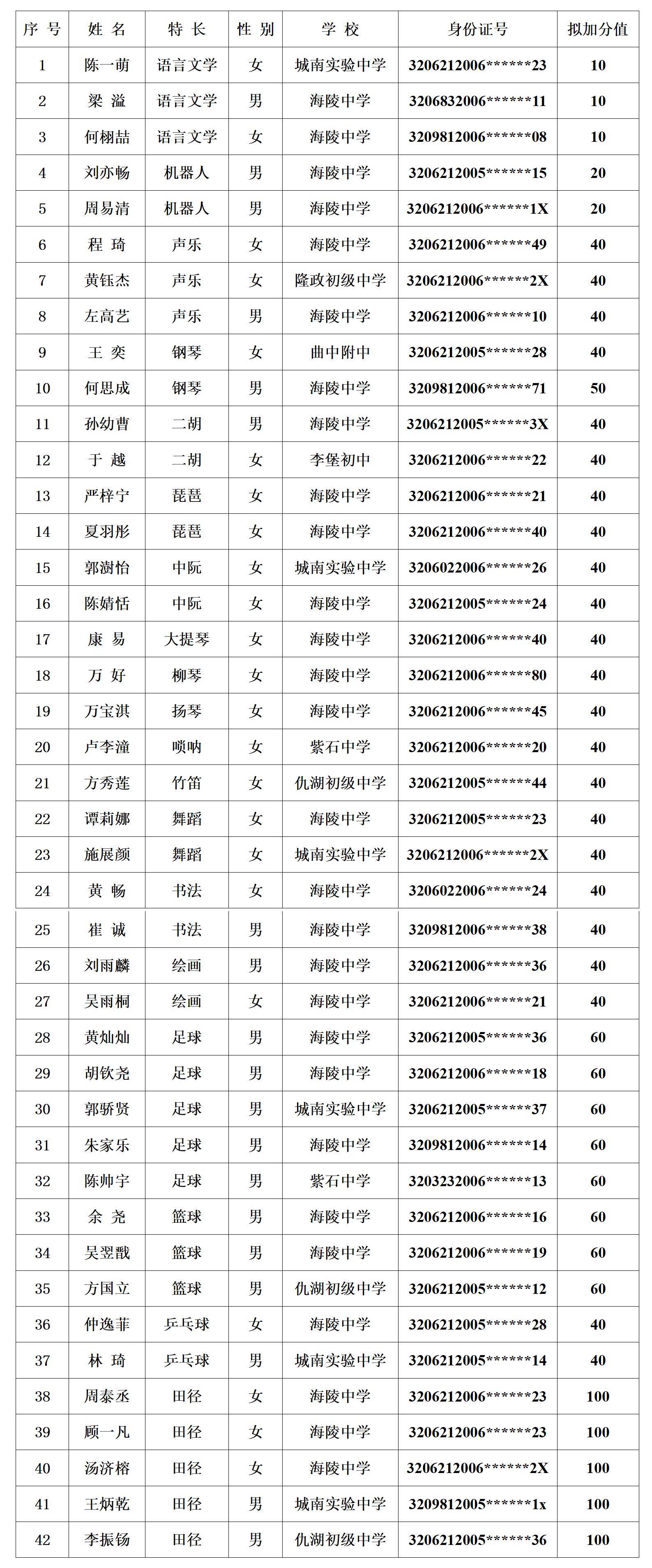 2021年9323彩集团特长生选拔结果公示 来源: 发布时间:2021-05-09 00:00:00 浏览次数: 次 【字体:小 大】 根据海安市教体局海教基〔2021〕22号文件精神,我校于2021年5月9日对符合我校特长生报名条件的学生进行了专业测试,有42名同学被确定为今年我校特长生招收的人选,现予公示。如有情况反映,请于5月13日17:00前与我校校长室联系,联系电话:88826028,88826039。9323彩集团2021年5月9日 附:测试通过的学生名单 分享到: 【打印正文】