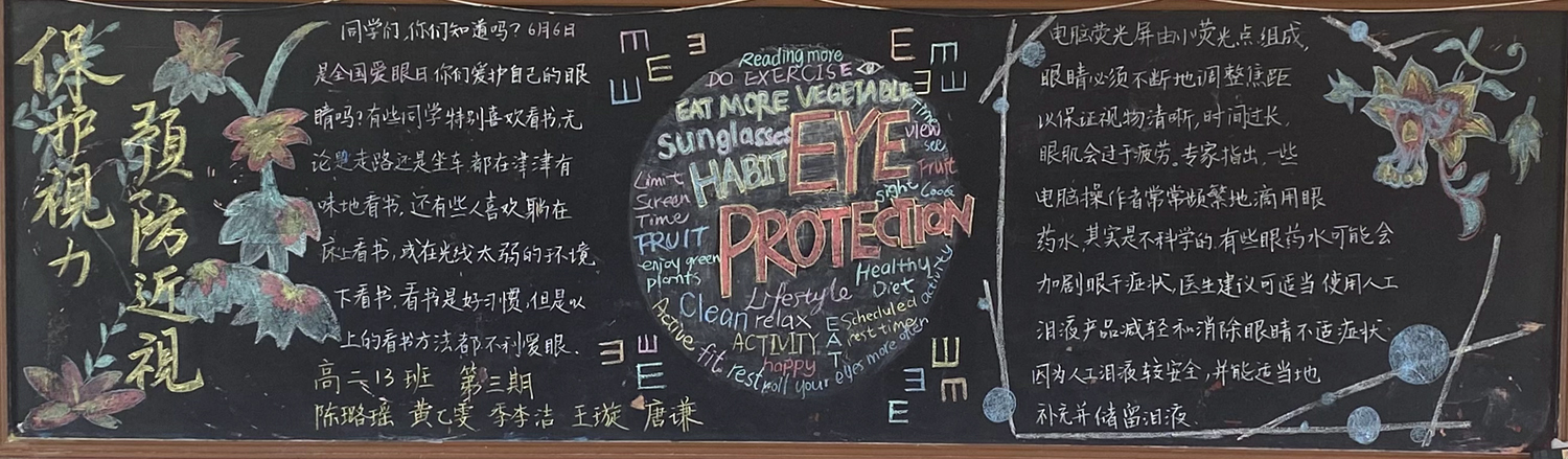 为进一步做好校园文化和班级文化建设,海安中学高一年级开展了以“民法典,与生活同行”为主题,高二年级开展了以“预防近视,保护视力”为主题的黑板报评比活动。