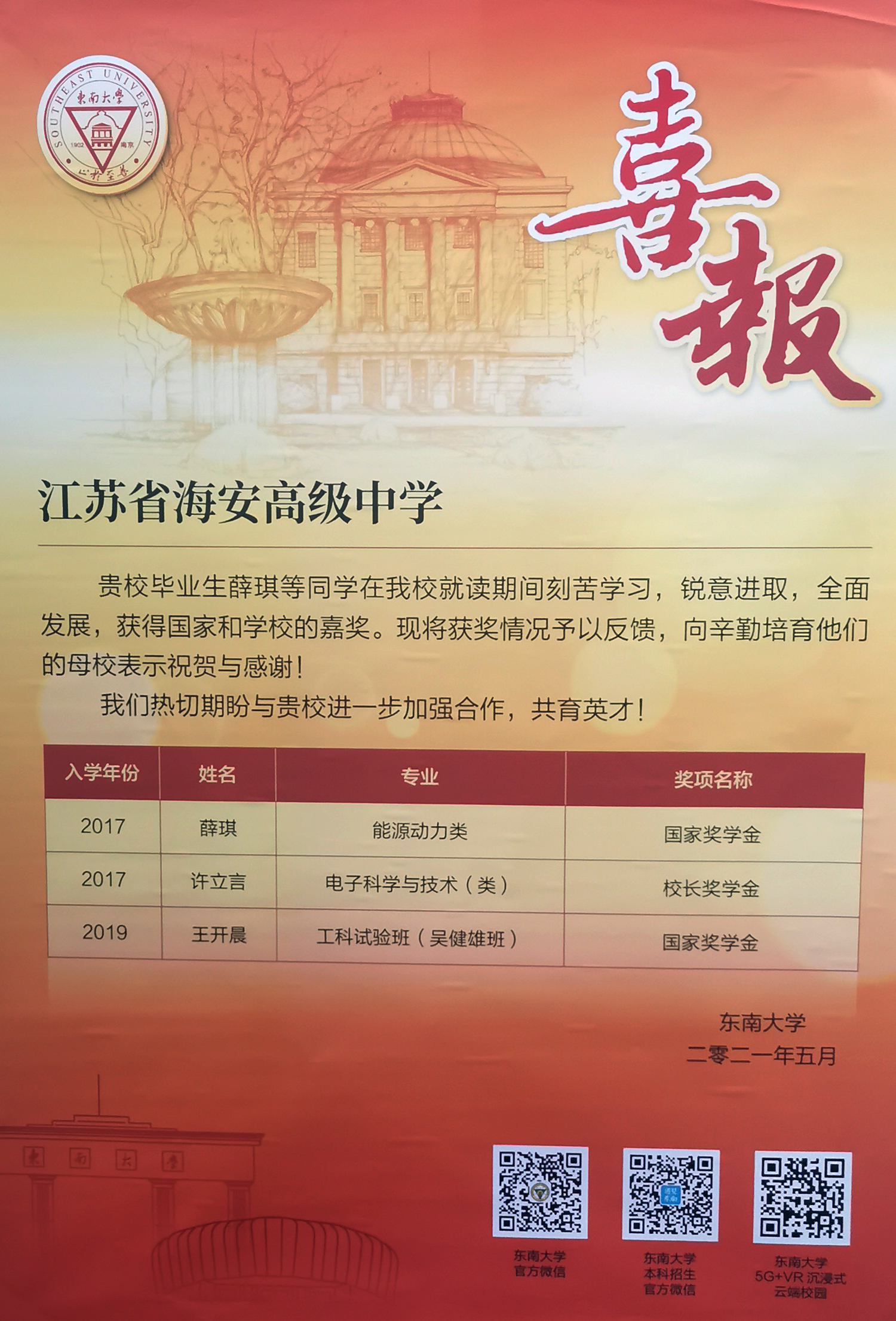 海安中学作为东南大学的优质生源基地,为东南大学输送了大量优秀学子,此次交流为两校后续的深度合作奠定了基础。