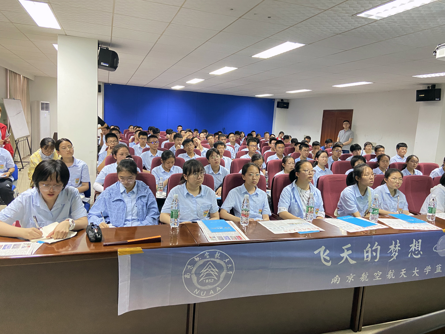 中午,雷雨忽至,电闪雷鸣,但是,什么也无法阻挡学子们的研学之途,下午一点半,大巴抵达南京航天航空大学。