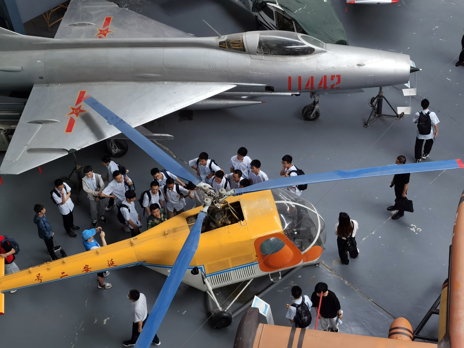 学生们首先参观了航空馆,各类飞机安静的栖息在大厅内,神秘而安详。各式战斗机虽然早已退役,但依然带着凌厉之风,向同学们诉说着战争与和平的故事。