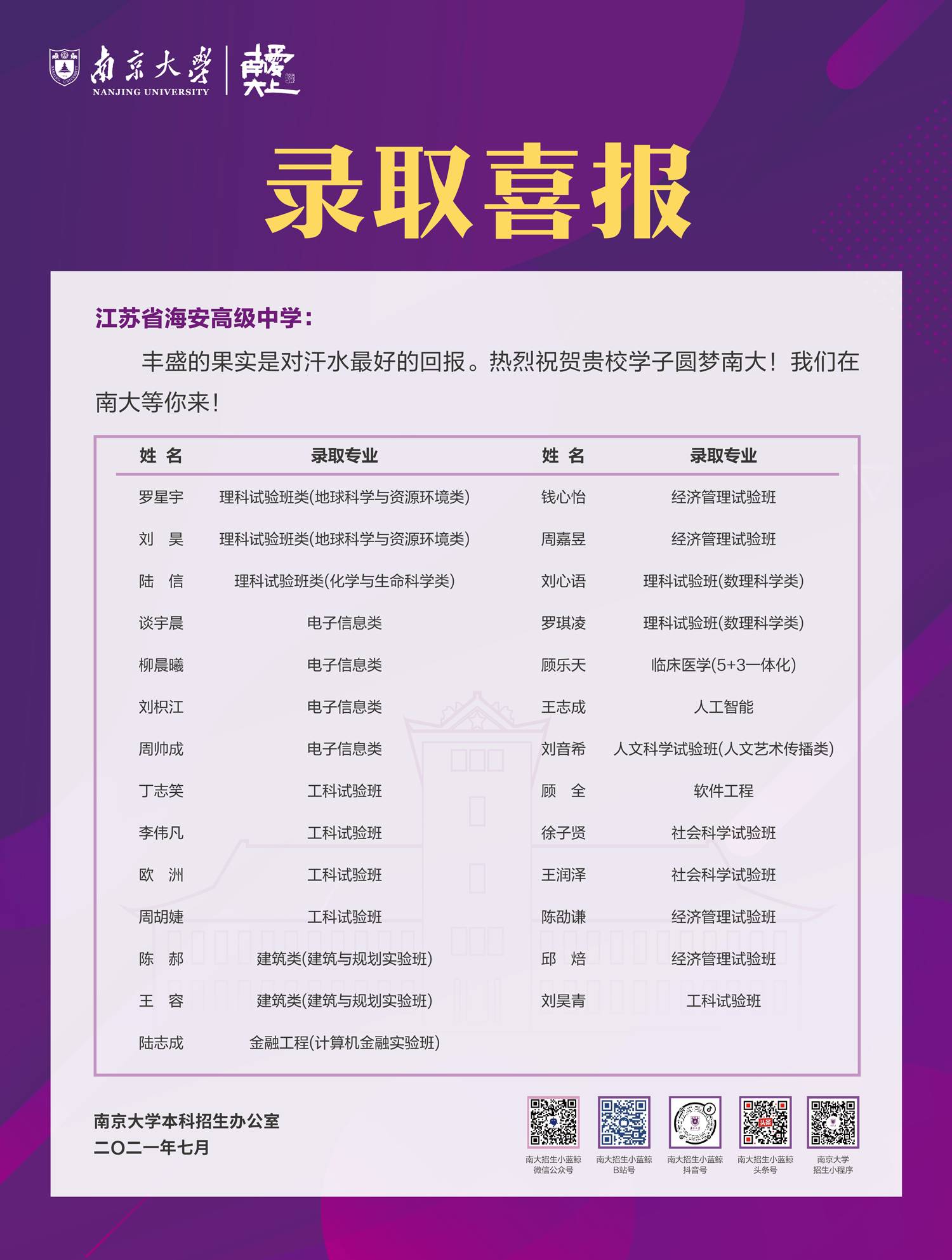 喜报频传!南京大学向我校发来喜报