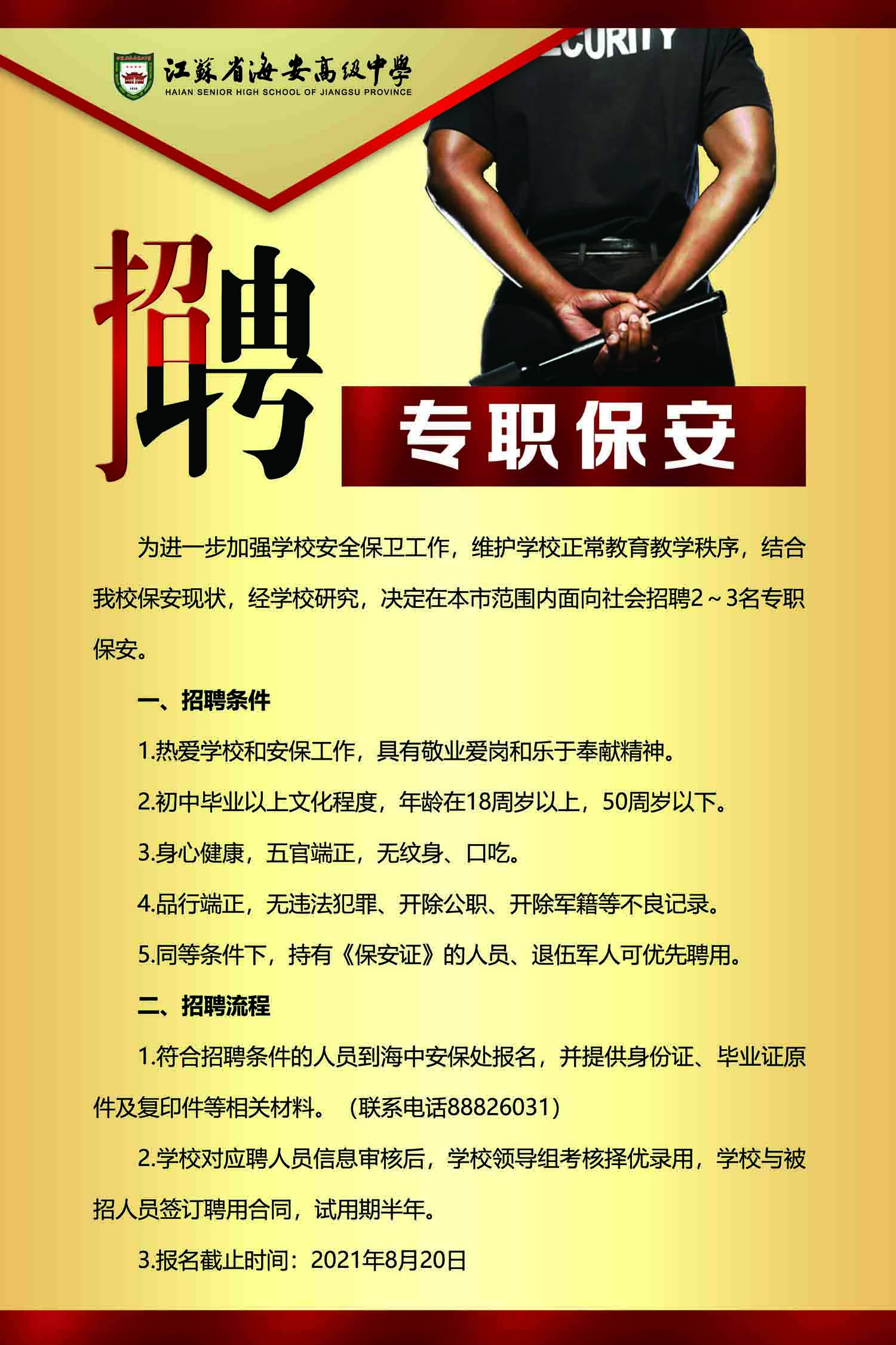 招聘专职保安
