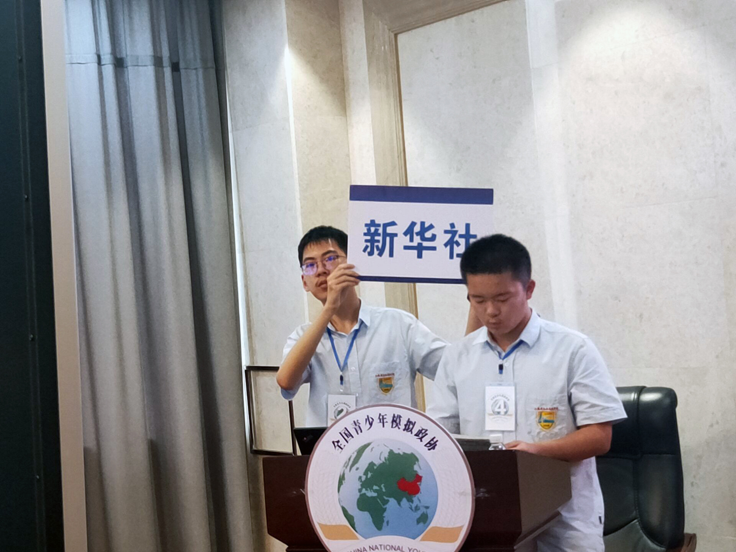 8月16日,全体成员参加了模拟新闻发布会,顾盾寒同学作为模拟新闻发言人在发布会上发言。他反应敏捷,指摘时弊,引经据典,对于小记者的提问给予了细致深刻的回答。
