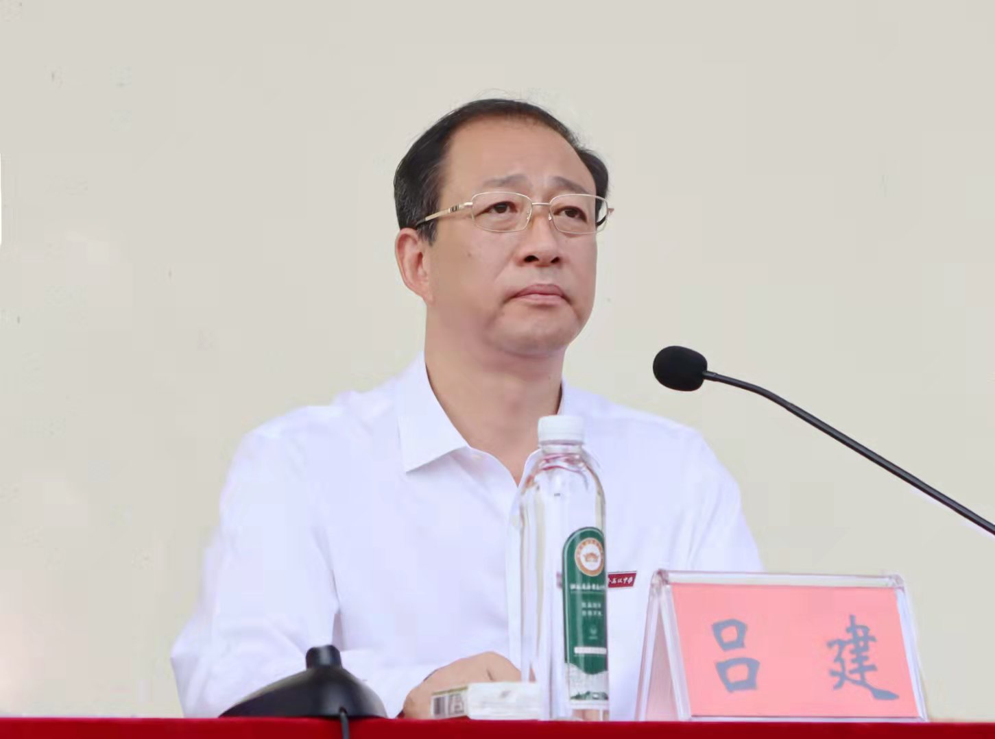 海安中学党委书记、校长吕建作军训总结讲话,吕校长首先对各位来宾的到来表示热烈的欢迎,对全体参训同学展示出的不屈斗志和坚韧意志表示赞赏,对各位教官用过硬的作风带出了过关的战士表示感谢。他指出,7天的磨砺,同学们的身姿更加挺拔,面容更加坚毅,目光所及,尽是铮铮儿女。希望同学们把军训中炼就的不服输的拼劲、打不垮的韧劲、善合作的巧劲带到今后的学习生活中去,直面任何挑战,战胜一切困难,书写属于自己的青春华章,成为实现中华民族伟大复兴的先锋力量!