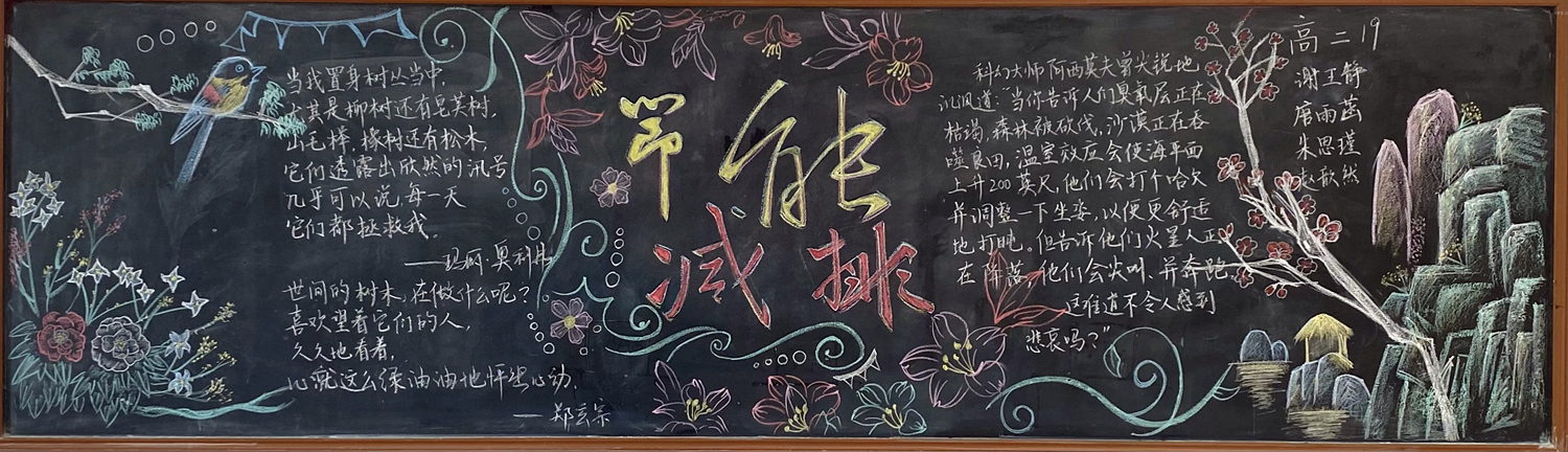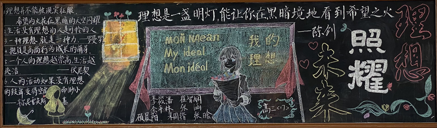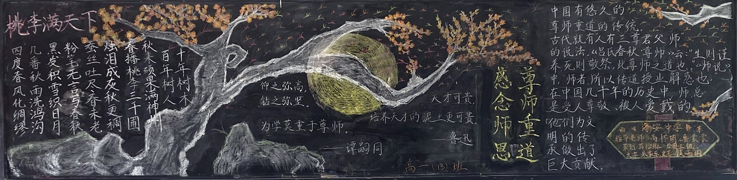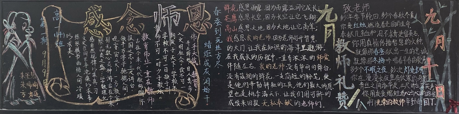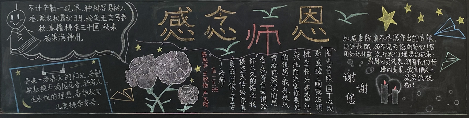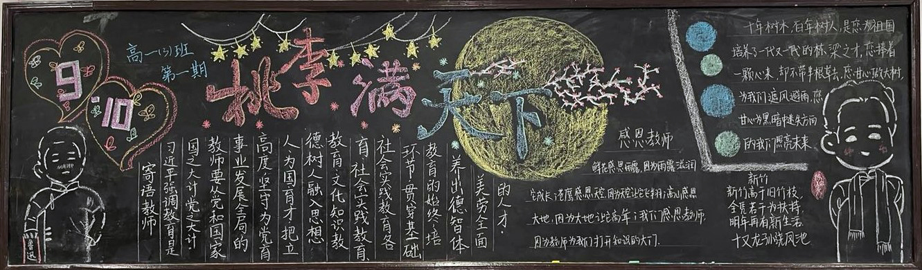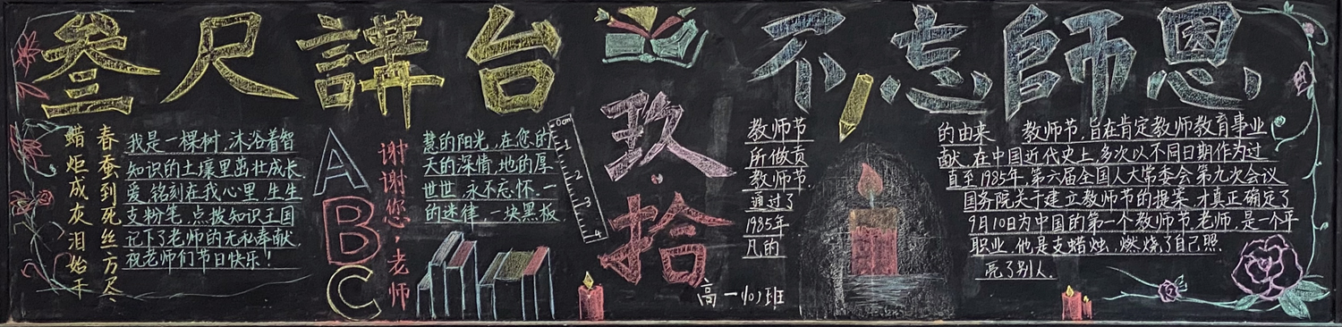 新学期伊始,为进一步做好学校文化建设和班级文化建设,我校高一年级以“感念师恩”,高二年级以“节能降碳绿色校园”,高三年级以“理想照亮未来”为主题开展黑板报评比活动。