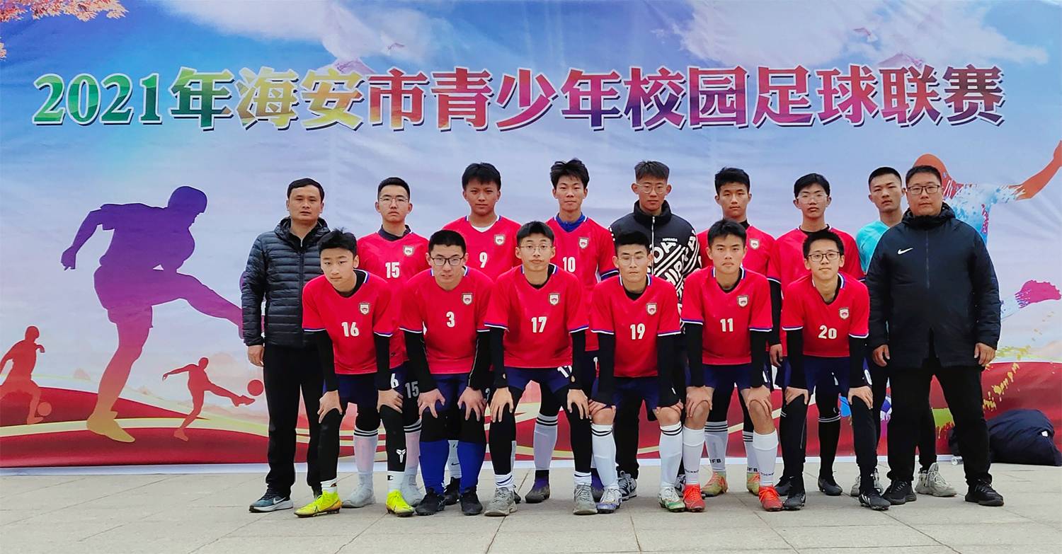 2021年海安市青少年校园足球联赛于11月28日在海安市城南实验中学举行。海安中学足球队发挥出色,一路过关斩将,均以大比分战胜对手,最终以一球未失的全胜战绩夺得高中组冠军,海中王子扬同学也以6个进球荣获高中组“最佳射手”。
