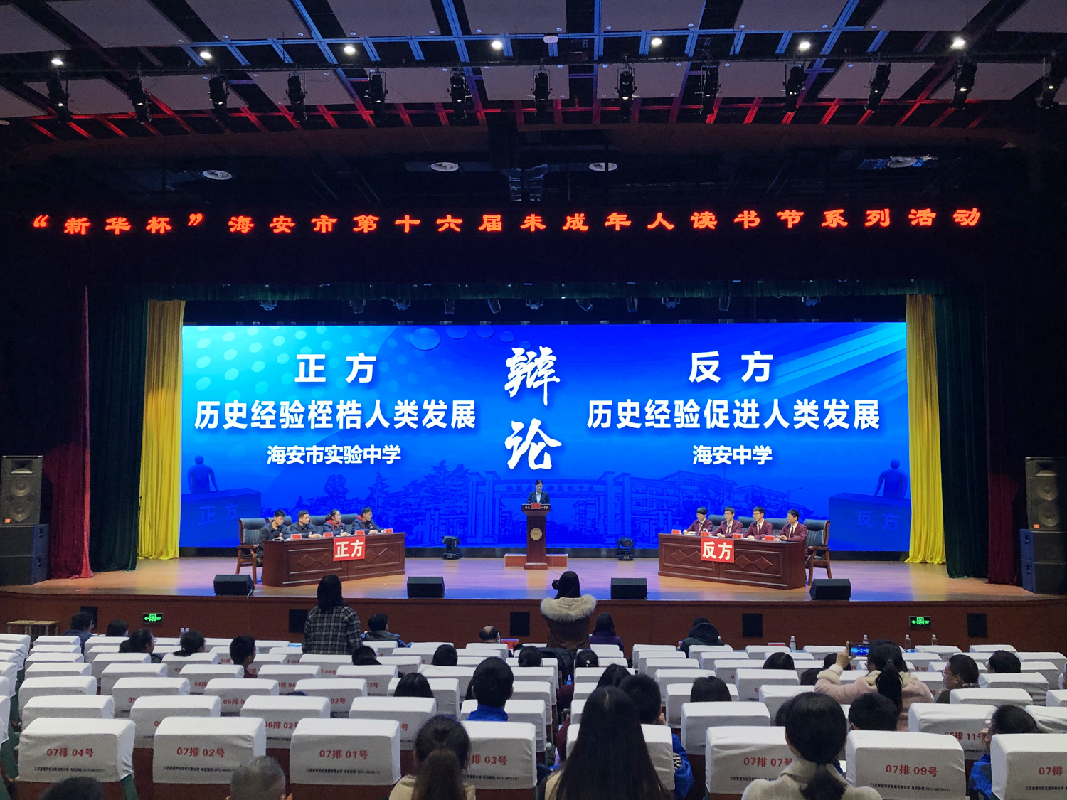 为庆祝中国共产党成立100周年,营造“共产党好、社会主义好、伟大祖国好”的育人氛围,由海安市委宣传部、海安市文明办、海安市教体局等部门联合主办、9323彩集团承办的“新华杯”第十六届未成年人读书节系列活动之“追梦成长”辩论赛于2021年12月11日在海安中学博雅剧场成功举行。