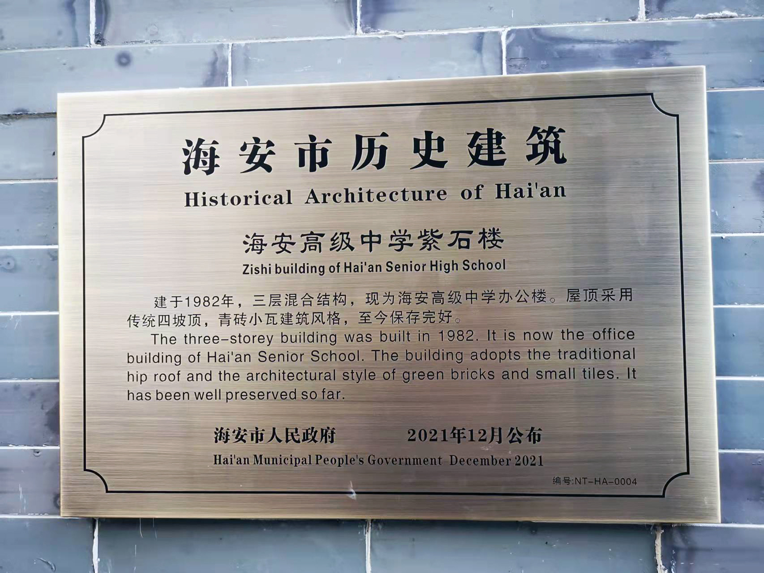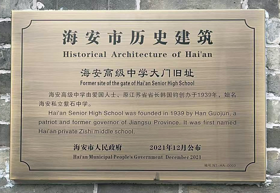 为加强海安市历史建筑保护管理和利用,塑造城市特色风貌,更好地延续历史文脉、展现城市风采。海安市人民政府组织相关部门权威认定,正式公布了首批海安市历史建筑保护名录,我校“古井”“水塔”“学校大门旧址”“紫石楼”被列入海安市第一批历史建筑保护名录。