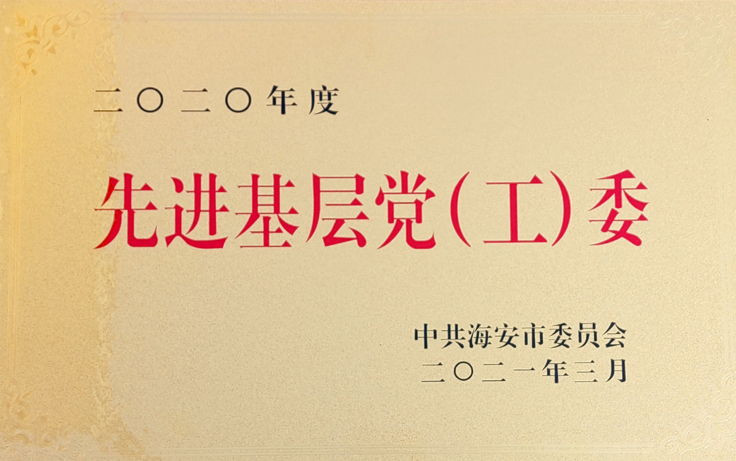 ▲我校党委获评海安市先进基层党(工)委