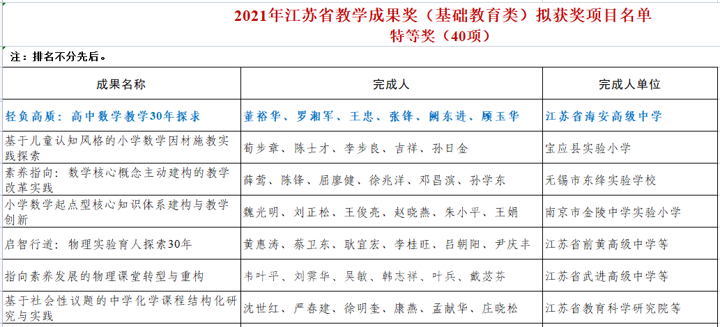▲我校“‘轻负高质’高中数学教学30年探求”获江苏省教学成果特等奖