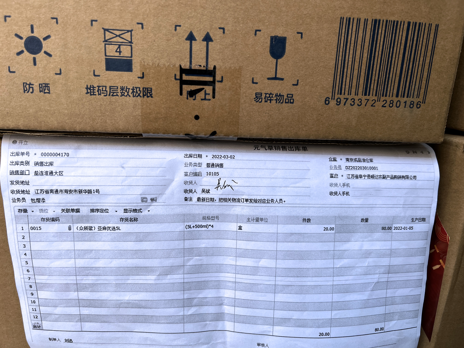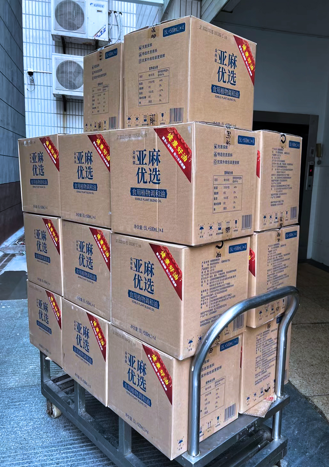 日前,我校食堂收到一份特殊的快递20箱亚麻籽调和油,物流单上没有寄件人姓名和地址。