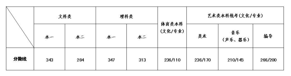 注:一、艺术类校考本科专业录取最低控制分数线: