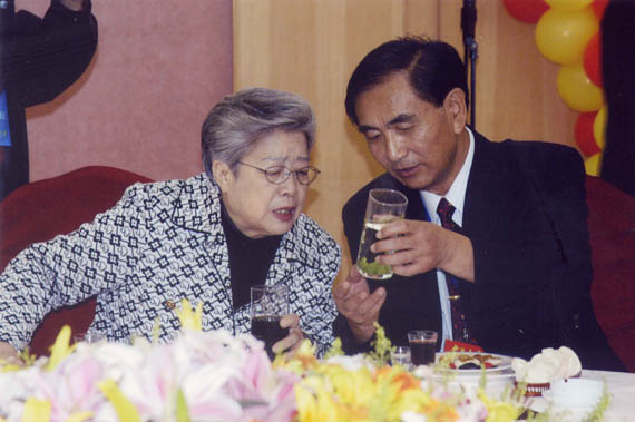 校友李秀生(右)和国家领导人吴仪(左)在一起