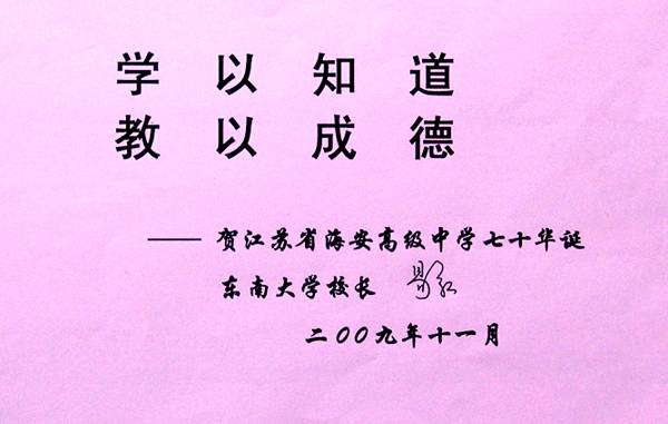 东南大学校长易红为我校70校庆题词