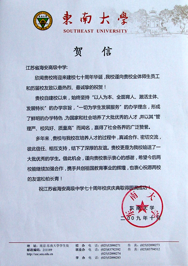 东南大学贺我校七十华诞