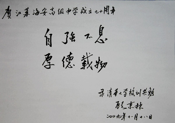 清华大学校长顾秉林为我校70校庆题词