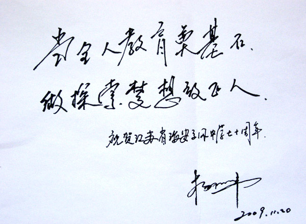 杨利伟将军为我校70校庆题词