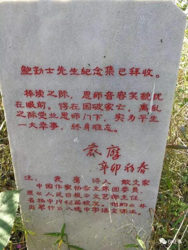 小草被人歌唱,在于它奉献一片新绿却不求索取;青松被人赞美,在于它正直挺拔却不择地势;蜡烛被人传颂,在于它燃尽自己却给别人带来光明。他们都是奉献者,鲍勤士也是奉献者,他在奉献的同时,也得到了一份为人讴歌的价值。仪征鲍勤士纪念亭里面有块石碑,铭曰“如金之铿如玉之玱先生雅言至大至刚春风化雨桃李其昌永怀述勉情悠韵长”。亭内还有著名经济学家,国务院总理李克强的博士论文导师厉以宁的题石额,及两副对联:“须发皤然情趣盎然正气浩然;言语妙矣涵义高矣感人深矣。” “国学泰斗安贫乐道面临小撮倭奸坚贞怒目横眉一身正气 ;教坛楷模博古通今手育万千桃李朝暮呕心沥血百世流芳。”